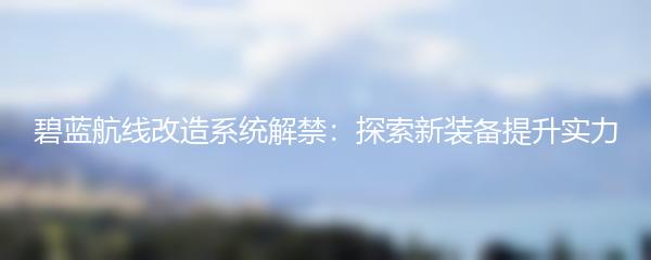 碧蓝航线改造系统解禁:探索新装备提升实力