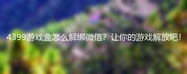 以上就是关于4399游戏盒如何解绑微信的方法。解绑微信可以让你的游戏体验更自由,享受更多精彩的游戏内容。只要按照以上步骤操作,你就能轻松解绑微信,开始一段全新的游戏之旅!