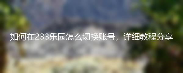 以上就是为大家带来的如何在233乐园怎么切换账号的详细教程。无论您是为了不同游戏需要,还是出于其他目的,切换账号都是一个简单而方便的过程。希望本文对您有所帮助,祝您玩得开心!
