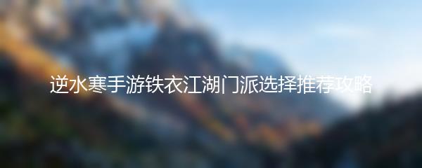 以上就是为大家带来的《逆水寒》手游铁衣江湖门派选择推荐攻略。希望能够对各位江湖侠客有所帮助,祝愿大家在逆水寒的江湖世界中畅游愉快!