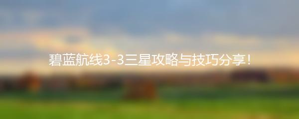 以上就是为大家带来的碧蓝航线3-3三星攻略与技巧分享!希望对玩家在游戏中取得好成绩有所帮助。
