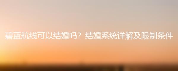 碧蓝航线可以结婚吗?结婚系统详解及限制条件