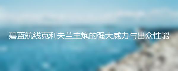 碧蓝航线克利夫兰主炮,强大威力与出众性能