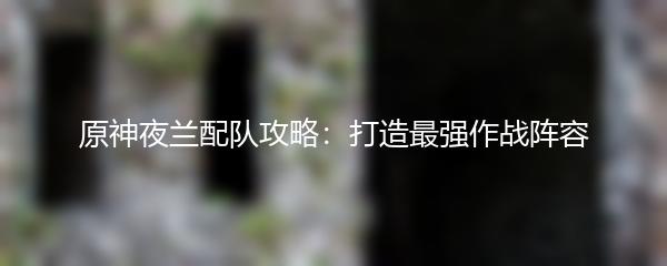 以上就是为大家带来的原神夜兰配队攻略:打造最强作战阵容。通过合理的搭配与技巧,相信你能够在游戏中发挥出夜兰的最强实力,征服各种敌人,成就辉煌的冒险历程。