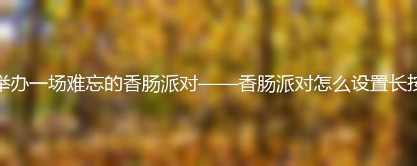 举办一场难忘的香肠派对是一项令人兴奋的任务,但是如何设置长按开镜却是一个关键的问题。本文将为您提供一些有用的建议,帮助您成功举办一场独特而精彩的香肠派对。