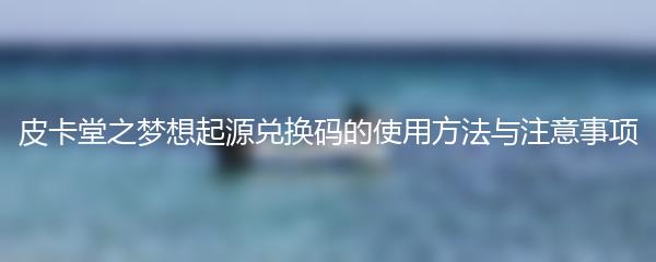 以上就是关于皮卡堂之梦想起源兑换码的使用方法与注意事项的介绍,希望能对您有所帮助。在游戏中,兑换码可以为您带来丰厚的奖励和特权,所以记得经常关注兑换码活动,并及时使用哦!