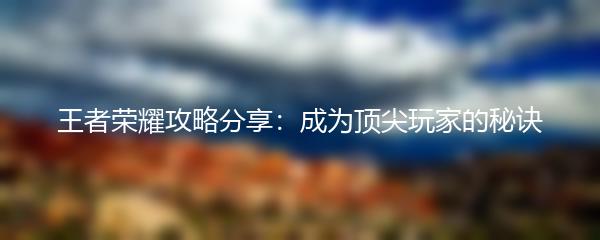 王者荣耀攻略分享:成为顶尖玩家的秘诀