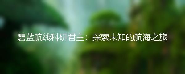 以上就是为大家带来的《碧蓝航线科研君主:探索未知的航海之旅》。在碧蓝航线的世界里,科研君主将带领我们探索未知的海域,挑战未知的敌对势力,创造属于航海界的新纪元。
