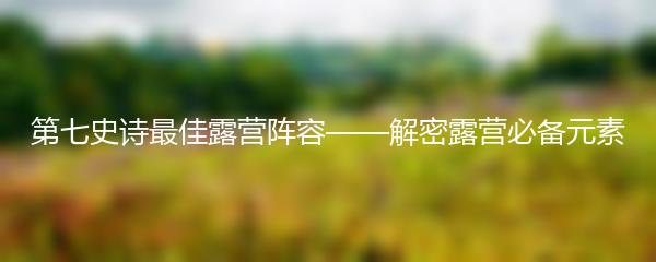 露营是一种让人与自然亲密接触的活动,同时也是缓解都市生活压力的最佳选择。如何组建一支最佳的露营阵容,成为了每个户外爱好者都十分关注的问题。下面将为大家介绍第七史诗中最佳的露营阵容,希望能够给各位带来一些灵感。