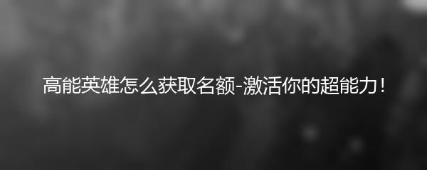 以上就是为大家带来的《高能英雄怎么获取名额-激活你的超能力!》。希望通过本文的介绍,能够激发你成为一名高能英雄的热情,并为你的追求提供一些建议和指引。相信只要你有足够的勇气和毅力,就能够成为你心中的超级英雄!