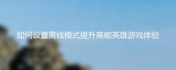 高能英雄怎么设置离线模式呢?通过一些简单的操作,你可以在没有网络连接的情况下继续享受游戏的乐趣。设置离线模式不仅可以帮助你解决网络不稳定的问题,还能节省流量,提升游戏的流畅度。接下来,让我们一起来看看如何设置离线模式。