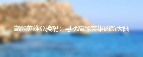 高能英雄兑换码:寻找高能英雄的新大陆