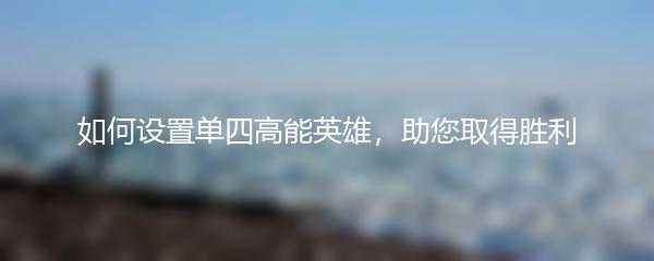 以上就是为大家带来的如何设置单四高能英雄,助您取得胜利。通过了解英雄技能特点、合理选择装备搭配、确定合适的位置和战术、与队友进行配合以及不断学习和提高自己的技术,你将能够成为一名出色的高能英雄玩家,取得游戏中的胜利。