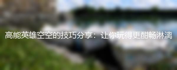 高能英雄空空的技巧分享:让你玩得更酣畅淋漓