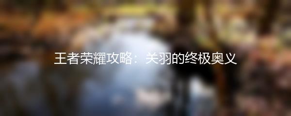 以上就是为大家带来的《王者荣耀攻略:关羽的终极奥义》。希望对玩家们有所帮助,取得更好的游戏体验。