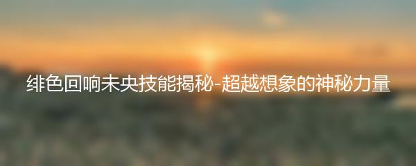 绯色回响未央技能揭秘-超越想象的神秘力量