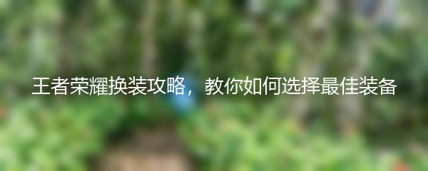 王者荣耀换装攻略,教你如何选择最佳装备