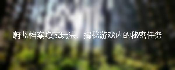 蔚蓝档案是一款备受玩家喜爱的游戏,其丰富的故事背景和精美的画面设计吸引了大量的玩家加入其中。除了主线故事和常规任务,蔚蓝档案还隐藏着许多精彩的隐藏玩法。在本文中,我们将揭秘这些蔚蓝档案隐藏玩法,让你更深入地了解这款游戏。