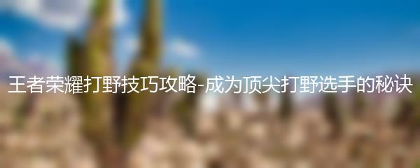 王者荣耀打野技巧攻略-成为顶尖打野选手的秘诀