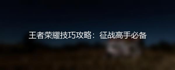 以上就是为大家带来的王者荣耀技巧攻略,希望对广大玩家在王者荣耀的征战中有所帮助。通过选择适合的英雄,掌握地图和视野,合理利用技能,与团队合作,坚持训练和学习,相信您一定能够在王者荣耀的战场上大放异彩,成为真正的王者。
