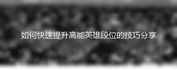 以上就是为大家带来的关于如何快速提升高能英雄段位的技巧分享。选择适合的英雄与定位、制定合理的游戏计划、提高个人技术水平、合理利用游戏资源和培养良好的游戏心态,这些都是提升段位的关键要素。希望通过这些技巧的分享,能够帮助您在高能英雄中取得更好的成绩。
