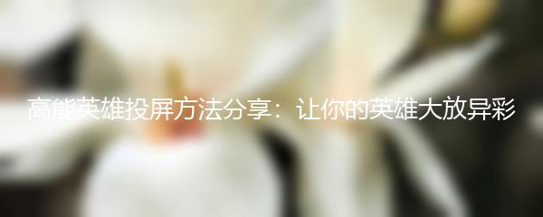 以上就是为大家带来的高能英雄投屏方法分享,希望能帮助到喜爱高能英雄的朋友们。通过投屏展示高能英雄的壮丽场面,让我们的英雄更加引人注目!快来尝试一下吧!