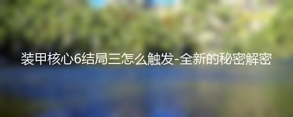 装甲核心6是一款备受期待的游戏,玩家们迫不及待地希望体验不同的结局。尽管游戏开发者一直保持神秘,但我们可以通过一些线索来了解结局三的触发方式。