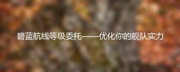 碧蓝航线等级委托——优化你的舰队实力