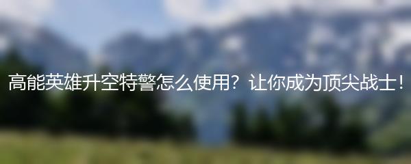 高能英雄升空特警怎么使用?让你成为顶尖战士!