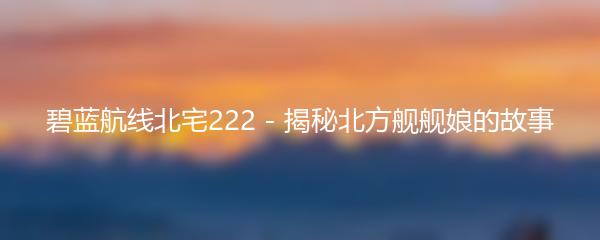 以上就是为大家带来的《碧蓝航线北宅222 - 揭秘北方舰舰娘的故事》。希望通过今天的介绍,能够增加大家对北方舰舰娘的了解,让更多的玩家爱上这个迷人的世界。