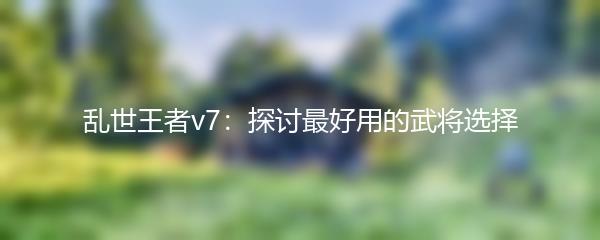 乱世王者v7:探讨最好用的武将选择
