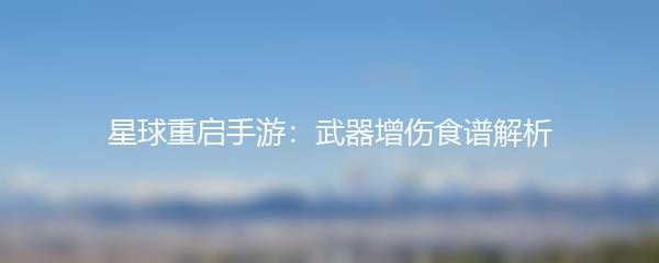 近期,《星球重启手游》火爆上线,成为玩家们追逐的新宠。在这个全新的星球探索之旅中,武器的增伤食谱成为了众多玩家关注的焦点。那么,究竟有哪些武器增伤食谱能够在战斗中为您带来巨大的优势呢?接下来,我们将为您一一揭晓。