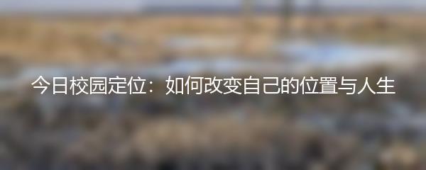 以上就是为大家带来的《今日校园定位:如何改变自己的位置与人生》的内容总结。
