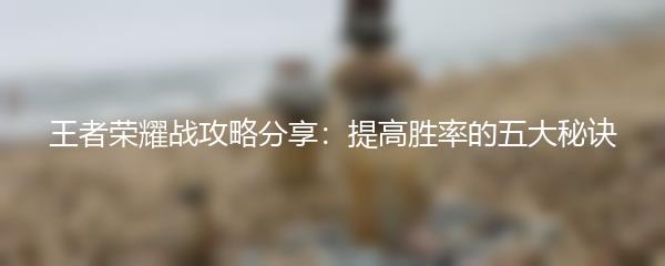 王者荣耀战攻略分享:提高胜率的五大秘诀
