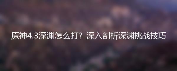原神4.3深渊怎么打?通过了解深渊挑战规则、合理战队搭配、熟悉敌人技能和弱点、运用元素反应、灵活运用角色切换和躲避技能,可以极大提升在深渊挑战中的战斗能力和成功率。快来挑战深渊,获得丰厚的奖励吧!