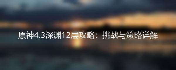 以上就是为大家带来的《原神4.3深渊12层攻略:挑战与策略详解》。通过了解敌人特点,合理搭配队伍,优先解决危险目标,灵活运用神之眷顾,不断优化装备和培养角色,相信大家能够在原神4.3深渊12层中取得优异的成绩!