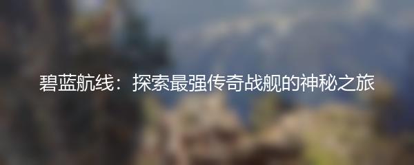 碧蓝航线:探索最强传奇战舰的神秘之旅
