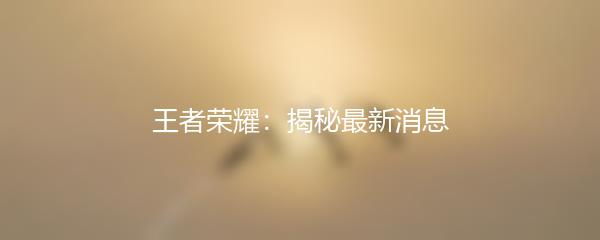 以上就是为大家带来的“王者荣耀:揭秘最新消息”。希望大家能从中收获一些对自己有帮助的信息,同时也为玩家们日后的游戏之旅提供一些参考。