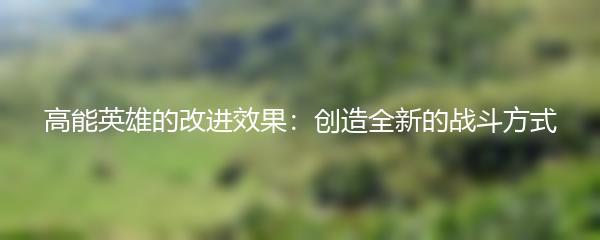 高能英雄是一种在电影、动漫和游戏中经常出现的角色。他们拥有强大的力量和能力,可以在战斗中起到至关重要的作用。然而,如何改进这些高能英雄的效果,让他们更加引人注目并且与众不同呢?这篇文章将针对这个问题展开讨论。