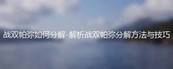 战双帕弥如何分解-解析战双帕弥分解方法与技巧