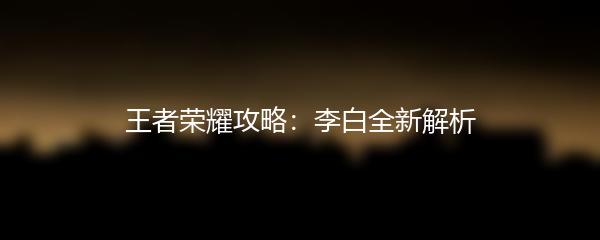 以上就是为大家带来的王者荣耀攻略:李白全新解析。通过合理利用李白的技能和战术,相信您能够在游戏中取得更好的成绩。希望本攻略能够对玩家们有所帮助,祝您游戏愉快!