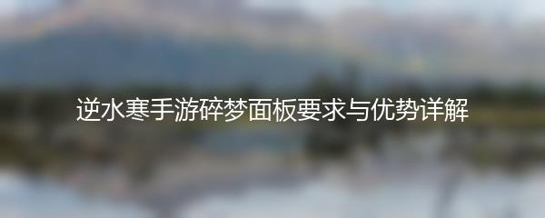 逆水寒手游是一款备受玩家喜爱的角色扮演游戏,其中碎梦面板是游戏中一项重要的要求与优势。今天我们将详细介绍逆水寒手游碎梦面板的要求和优势。