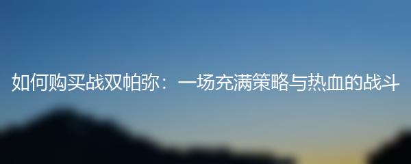 如何购买战双帕弥:一场充满策略与热血的战斗