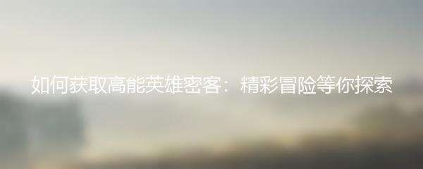 高能英雄密客是一款令人兴奋的冒险游戏,让你置身于惊险刺激的世界中。想要体验这个令人过瘾的游戏吗?不必担心!本文将向你介绍如何获取高能英雄密客,并为你揭开这个精彩游戏的神秘面纱。