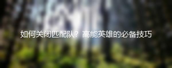 以上就是为大家带来的“如何关闭匹配队?高能英雄的必备技巧”的内容。通过选择适合的高能英雄、学习有效的定位技巧、战略性躲避敌方、灵活运用技能和道具以及善用队友的协助,我们可以更好地关闭匹配队,提高游戏体验。