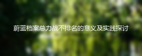 在当今竞争激烈的社会中,排名往往是衡量一个人或一个团队能力的重要指标之一。然而,对于蔚蓝档案工作而言,总力战不排名却有着重要的意义。本文将探讨总力战不排名的意义,并对其实践进行讨论。