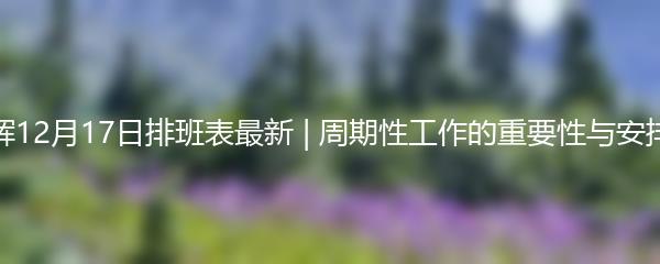 董宇辉12月17日排班表最新 | 周期性工作的重要性与安排方法