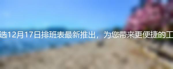 东方甄选12月17日排班表最新推出,为您带来更便捷的工作安排