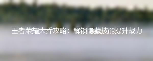王者荣耀大乔攻略:解锁隐藏技能提升战力