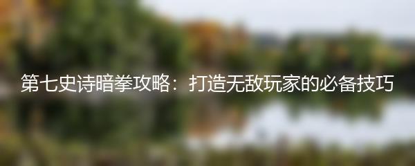 第七史诗是一款备受玩家喜爱的游戏,其中暗拳作为一项重要的角色技能,扮演着至关重要的角色。本文将为大家分享一些打造无敌玩家的第七史诗暗拳攻略,帮助你在游戏中取得胜利。